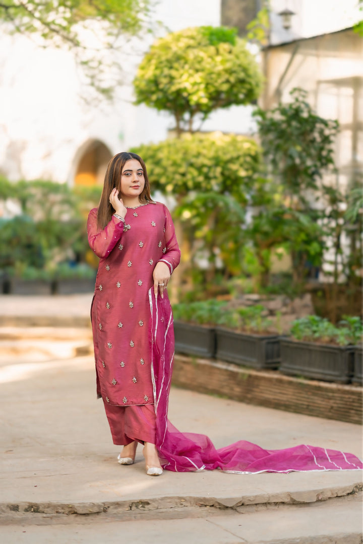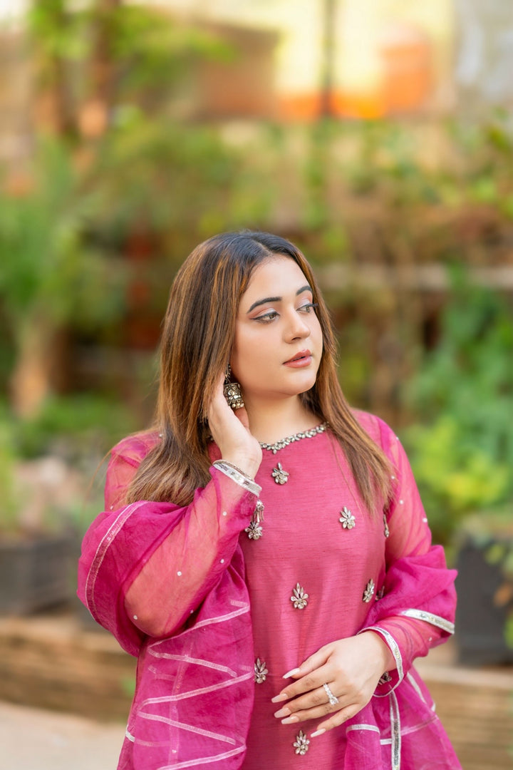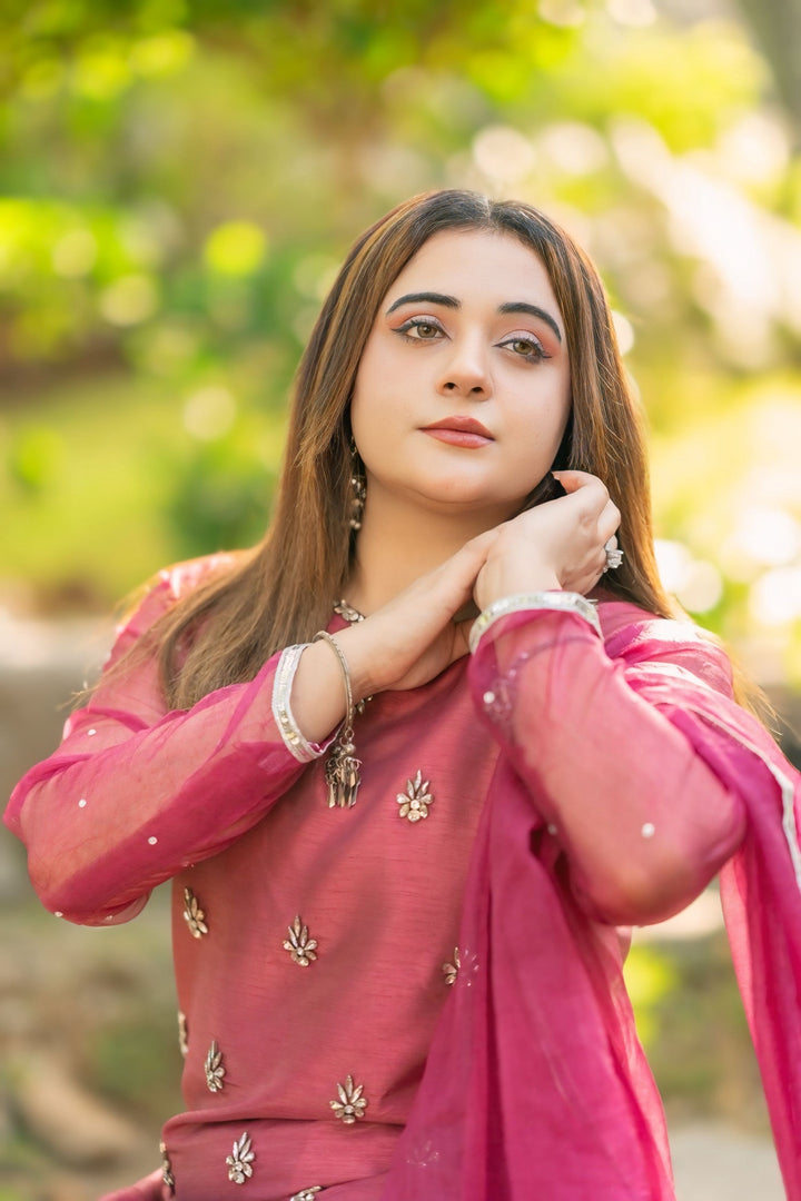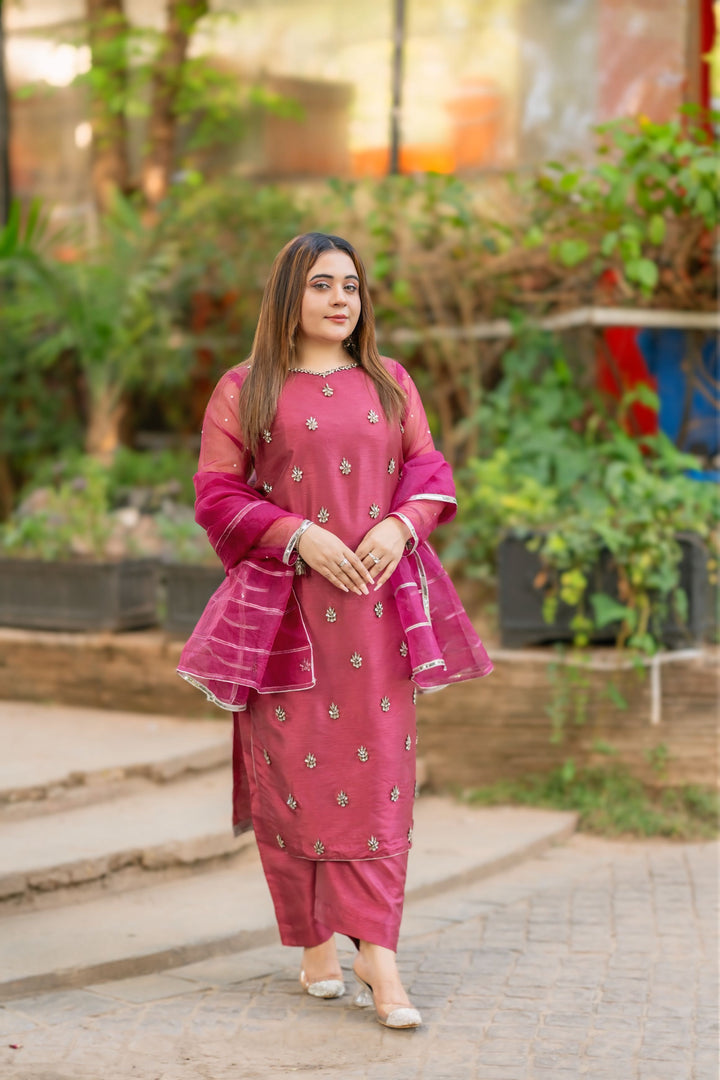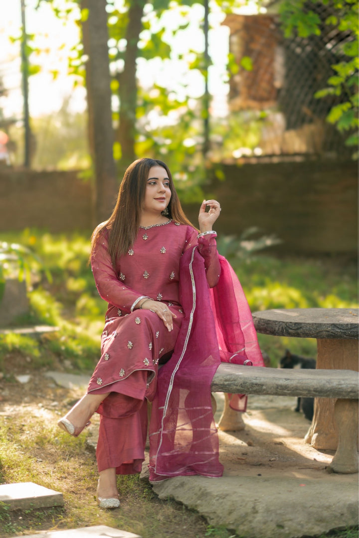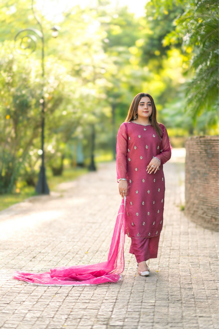 Aarzu — Stunning Mehron Fused Raw Silk 3-Piece Dress